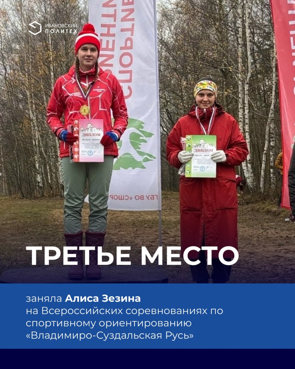 На Всероссийских соревнованиях по спортивному ориентированию «Владимиро-Суздальская Русь» Алиса Зезина представила наш вуз сразу в трех дисциплинах. Наша спортсменка вошла в десятку лучших в кросс-спринте (8 место) и кроссе-многодневном (лонг) (6 место). 🥉А в кросс-спринте Алису Зезину ждала награда за третье призовое место!