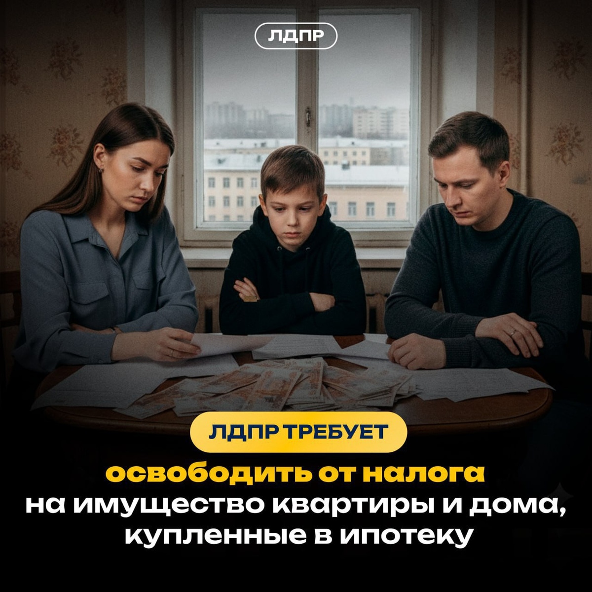 ЛДПР предлагает освободить от налога единственное жильё, находящееся в ипотеке 🔝 Депутаты фракции ЛДПР в Государственной Думе во главе с Председателем партии Леонидом Слуцким внесли законопроект, предлагающий освободить от уплаты имущественного налога жильё, приобретённое в ипотеку, на весь срок действия кредитного договора. Льгота будет распространяться только на единственную квартиру, дом или комнату, если жильё не используется в коммерческих целях. «Жильё — это первейшая потребность человека, особенно для семей с детьми. Даже при кадастровой стоимости квартиры в один миллион рублей налог на неё может составлять до 30 тысяч рублей — для многих это неподъёмная сумма. Поэтому ЛДПР предлагает снизить налоговую нагрузку на русские семьи. Сэкономленные средства семьи смогут потратить на воспитание детей, лечение, образование и другие насущные нужды», — отметил Председатель ЛДПР Леонид Слуцкий. ➡️ Инициатива направлена на поддержку миллионов россиян, в первую очередь — молодых семей с