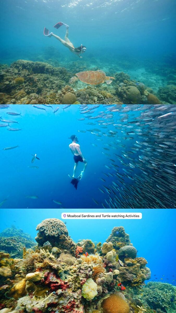 🐢🌊 Завораживающее Шоу Сардин и Морских Черепах в Моалбоале, Себу 🌊🐢 Моалбоал на острове Себу — это истинный рай для любителей подводного мира. Это место знаменито своими впечатляющими косяками сардин, которые двигаются в унисон, создавая невероятные подводные танцы. Эти миллионы блестящих рыбок превращают обычное погружение в захватывающее зрелище, которое не хочется пропускать. Но это ещё не всё! В водах Моалбоала у вас есть уникальная возможность встретить очаровательных морских черепах, которые величественно и грациозно плавают среди коралловых садов. Моалбоал — идеальное место для дайверов и сноркелеров всех уровней. Здесь можно насладиться ярким и разнообразным подводным миром, вдыхая атмосферу спокойствия и гармонии природы. Как добраться: Моалбоал расположен примерно в 90 километрах к юго-западу от Себу-Сити. Добраться можно на автобусе или автомобиле, что займёт около 2-3 часов в пути. Что посмотреть и чем заняться: Основные занятия в Моалбоале — погружения с аквалангом