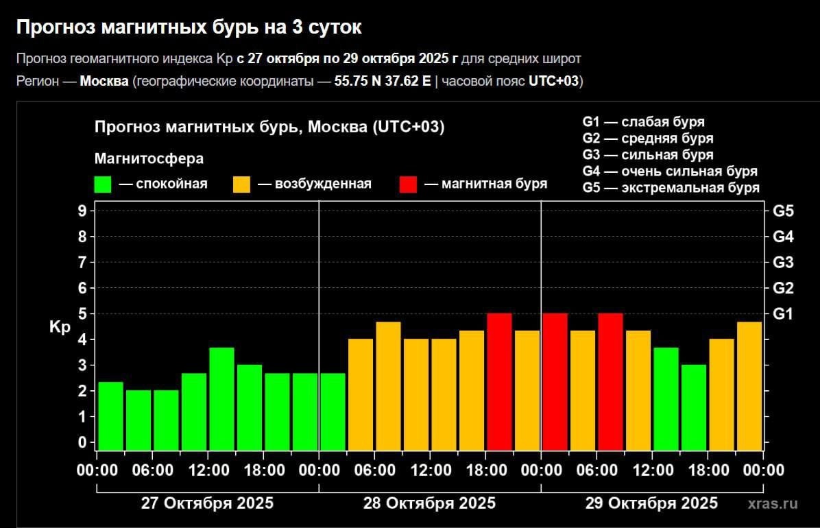 Сегодня Землю накроет магнитная буря. Её пик ожидается вечером, с 18:00 до 21:00. Сила влияния метеоударов может достигать 5 баллов. Метеозависимым людям рекомендуется больше времени проводить на свежем воздухе, пить больше воды и стараться избегать стрессов и перегрузок.