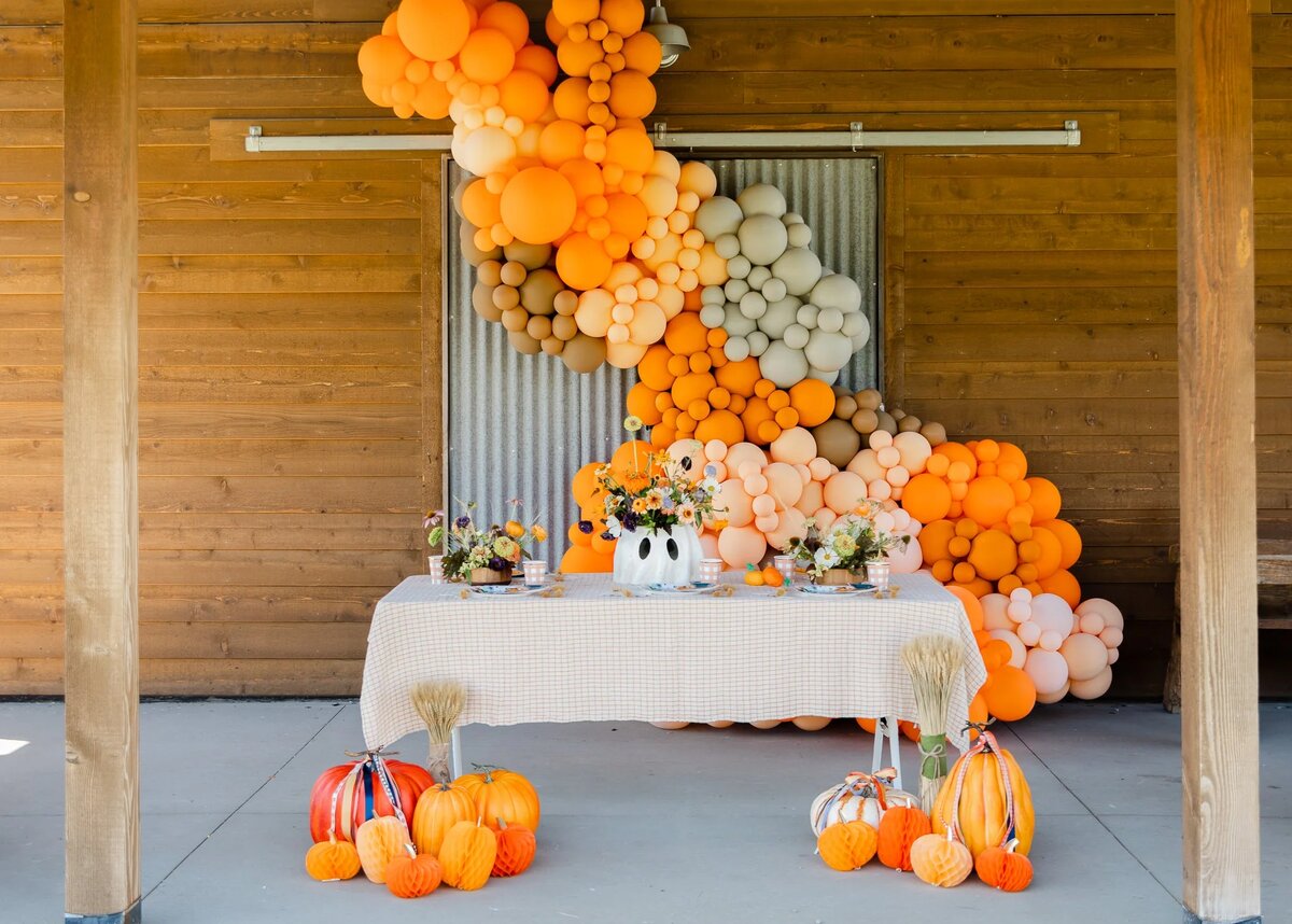 Счастливой осени! Если у вас впереди важные даты: день рождения, годовщина свадьбы или любой другой праздник, самое время начать планировать! Мы подарим вам вдохновение уютными фото и поделимся ссылками на декор и посуду в осеннем стиле. Неважно, что вы будете отмечать, личный праздник или Хэллоуин, у нас очень большой выбор украшений на любой вкус. А ещё у нас есть классные костюмы для детей! Есть полноценные наряды и аксессуары: ободки, шляпки, заколки, волшебные палочки и другая красота. Чтобы не усложнять вам задачу, мы выбрали фото с универсальными декорациями. Если вы хотите воссоздать что-то подобное, рекомендуем использовать ту же осеннюю цветовую гамму для фона, декора и цветочных композиций. Декораторы в основном придерживались оттенков оранжевого, но добавили несколько нейтральных цветов, таких как серый и коричневый, чтобы придать интерьеру глубины. Яркие осенние цветы — неотъемлемая часть праздника, посвященного урожаю, поэтому мы рекомендуем разместить на столе несколько