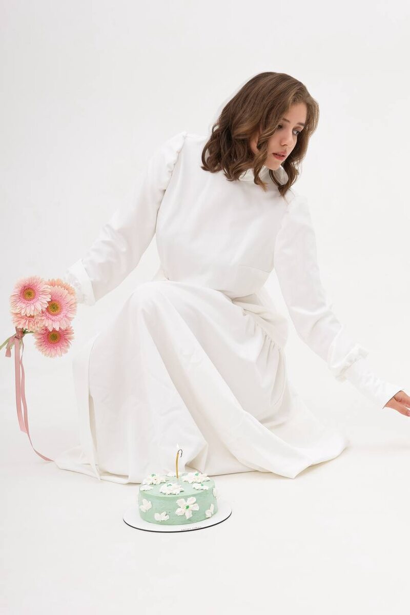 Мне нравится создавать вещи индивидуально для вас 💝 Сегодня покажу вам еще одно шикарное платье, созданное на заказ 😇 Конечно, все начинается с ВАШЕГО желания ✨ Вы присылаете референс, потом мы продумываем модель до мелочей - при создании вещи индивидуально можно самим определить всё вплоть до цвета ниток! В это вся прелесть 🥰 Затем выбираем ткань. Я создаю лекала по вашим меркам для идеальной посадки по фигуре. Шью с чистой красивой обработкой внутри. И получается уникальная вещь в единственном экземпляре во всей Вселенной! Истинная магия 🪄 В публикации - классическое белое платье с романтическими элементами 🤍 Воротник-стойка с пуговками, обтянутыми тканью платья вручную. Заниженная талия (верх популярности сейчас и в следующем году!). Длинные рукава с широкими манжетами, наполовину прикрывающие пальцы. Милые сборки на плечах, у манжет и на талии 🤍