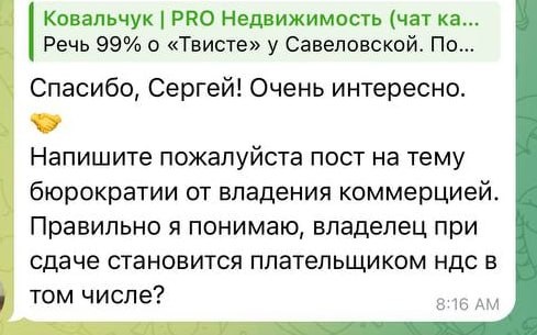 НДС и налоги в коммерции. Апдейт ’25 Октябрь 2025-го. А в личку все еще летит один и тот же вопрос: «Купил офис. А что там с налогами? НДС платить надо?» Давайте зафиксируем раз и навсегда. Покупка коммерческого актива — это не квартира под сдачу. Это вывеска «Я начал бизнес» на вашей двери. И если вы этого не поняли — вы уже остались за бортом. Что с НДС и прочим «головняком»? Суть прежняя, но нужно понимать детали. 1️⃣ ИП на УСН — базовый лагерь Это по-прежнему рабочий инструмент для большинства частных инвесторов. Платите свои 6% с дохода и спокойно спите. НДС здесь нет — ваши арендаторы, как правило, тот же малый и средний бизнес, им он ни к чему. Но есть нюанс, о который спотыкаются новички. С 2025-го государство подкрутило правила: теперь важен не только оборот, но и совокупная кадастровая стоимость активов. Перешли порог — добро пожаловать в «высшую лигу» с другими налогами. А теперь — вишенка на торте, которую 99% рынка еще не осознали. Готовится законопроект, который сни