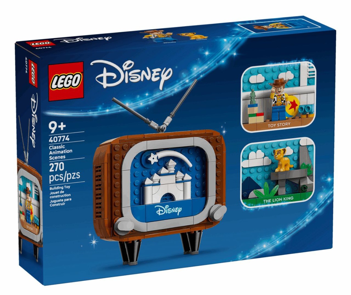 В магазинах доступен 40774 Disney Classic Animation Scenes, подарок при покупке, посвященный диснеевским анимационным фильмам «Король лев» и «История игрушек». Это классический пузатый телевизор, где можно менять мультик: собрать сценку с Вуди или Симбой. Сет вручается за покупку на сумму от €130.