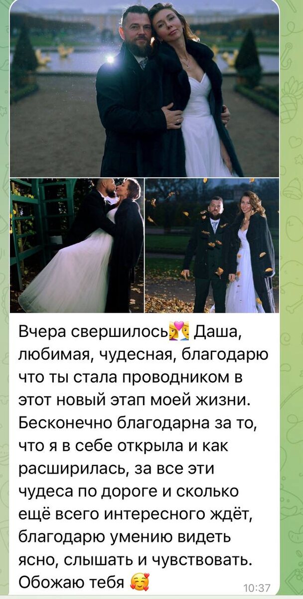Ещё одно важнейшее событие октября: ученица 3-го потока Абонемента в квантовую реальность Анна Изотова вышла замуж!!!👏🏼👏🏼👏🏼🥳🥳🥳 И это было одно из её намерений на 3-й поток! Боже! Какое счастье!!!🙏🏼🙏🏼🙏🏼 Александр и Анна💃💍🕺 Примите мои самые теплые и сердечные поздравления🫂🥳❤️ Анюта, ты не "нашла" мужа. Ты сотворила его своей новой, выровненной частотой, своей готовностью принять любовь. Ты проявила его из квантового вакуума бесконечных возможностей, и он пришел в твою жизнь как самый естественный и гармоничный резонанс🌊 Поздравляю👏🏼👏🏼👏🏼 Будьте счастливы🎉🎉🎉