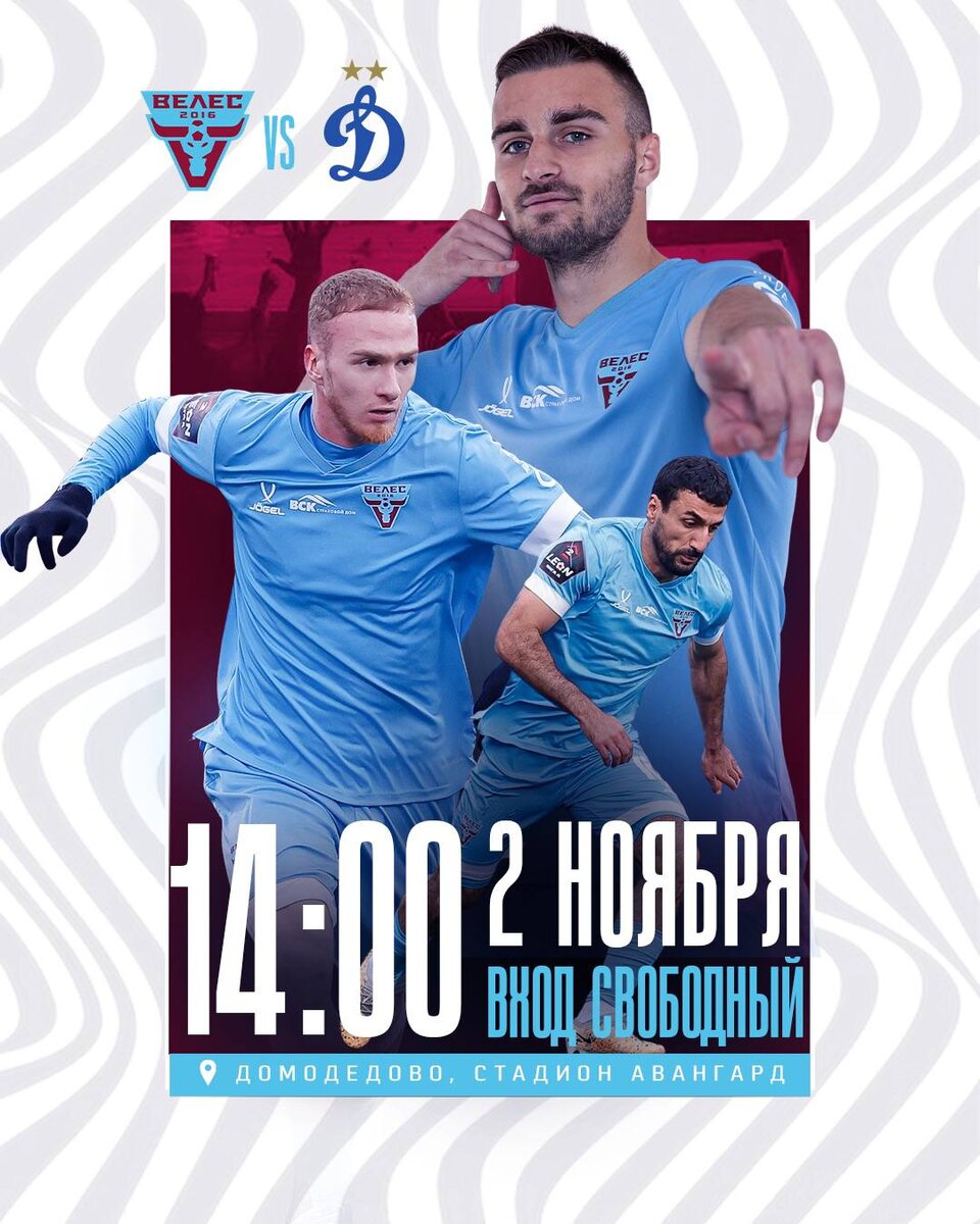 В воскресенье футбольный клуб Велес встретится с «Динамо-2» на родном «Авангарде» Матч начнется в 14:00, а бесплатные билеты будут в кассе стадиона «Авангард» за два часа до начала игры Приходите поддержать нашу команду. Подписывайтесь на новостной канал в Телеграм https://t.me/domodedovolive История Домодедово https://t.me/retrodmd