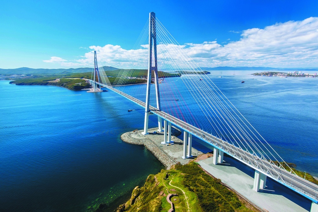 Русский мост — символ современной инженерии России. Он был построен к саммиту АТЭС в 2012 году и соединил материк с островом Русский. Длина — 3100 метров, а центральный пролёт вантовой системы (1104 м) — самый большой в мире.