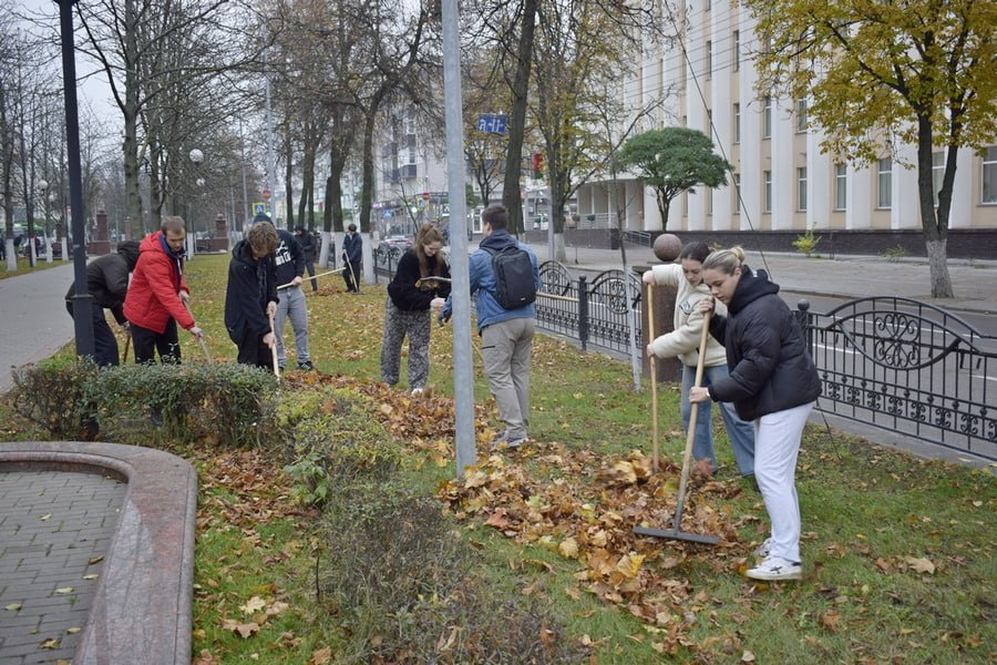 В Гомеле на уборку листвы в Железнодорожном районе вышли все факультеты БелГУТа