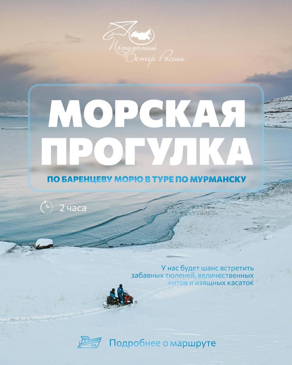 🐋 Морская прогулка в Баренцевом море У нас будет шанс встретить забавных тюленей, величественных китов и изящных касаток 📍 Входит в программу зимнего тура по Мурманску Выход в море возможен только при хорошей погоде Поедем на море этой зимой? 😜 Узнать всю программу можно у вашего личного менеджера из «Попутного ветра России»: t.me/+79635079797