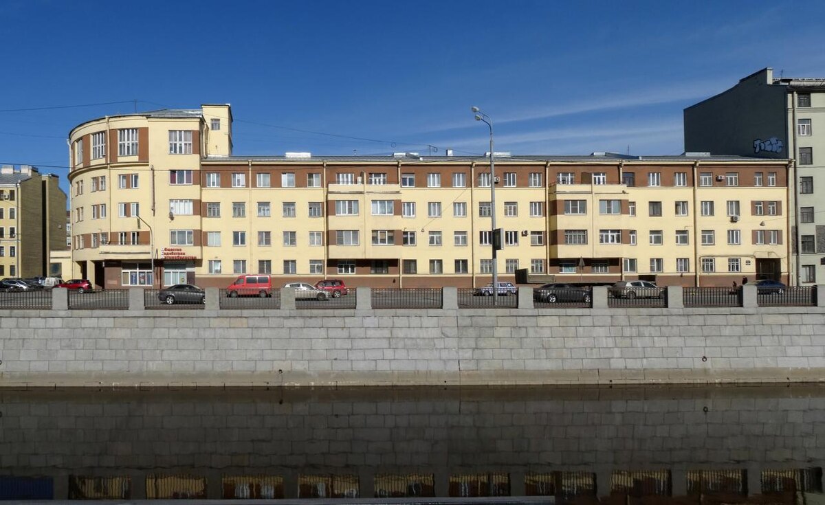 Сегодня мы рассмотрим очередной образец конструктивизма — квартиру в одном из домов жилого комплекса «Дом Электротока». Комплекс зданий на набережной Обводного канала, дом 121, с тремя литерами А, Б и В был построен в конце 1920-х годов для работников расположенных через канал напротив ГЭС-1 и расположенного там же (по настоящее время) в Масляном переулке Центрального эксплуатационного района системы Ленэнерго (тогда «Электротока»). Дома были «кооперативными», но с привлечением средств Ленэнерго для строительства и поддержания «инфраструктуры», состоящей из собственной котельной, полумеханизированной прачечной, детского сада, домоуправления, «красного уголка» с кинозалом, дворовых скверов с цветниками и даже круглой чашей фонтана в центре первого двора и «солярия» на плоской крыше углового, самого высокого корпуса. У детского сада, кроме помещений на Обводном канале, была собственная дача в Сиверской на берегу р. Оредеж, куда за небольшую плату на все лето вывозили детей дошкольного во