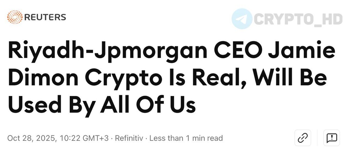 😏 CEO JPMorgan: Криптовалюта реальна, и мы все будем ее использовать. ➤ CEO JPMorgan Джейми Даймон ранее (ярый хейтер): - Биткоин - схема Понци - Никогда не купит BTC - Нет гарантий, что «Сатоши» не увеличит эмиссию BTC. - Советует не связываться с криптовалютой. - Запретил бы криптовалюту, если бы работал в правительстве. ➤ Джейми Даймон сегодня (позиция смягчается): - Стейблкоин-переводы - В JPMorgan позволят торговать криптовалютой - Банк JPMorgan намерен развивать услуги, связанные со стейблкоинами. - У JPMorgan есть шанс построить великий цифровой банк. - В JPMorgan позволят клиентам покупать BTC. - Разработка собственного стейблкоина. Crypto Headlines
