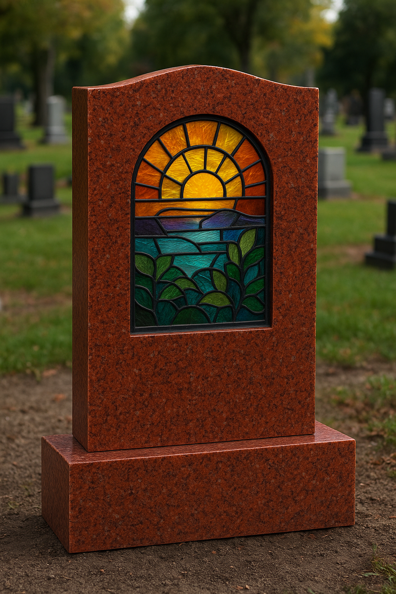 Технология создания таких памятников требует особого мастерства. Гранитные элементы изготавливаются с ювелирной точностью, чтобы обеспечить надёжное крепление стеклянных фрагментов. Витражи выполняются по классической технике пайки или с использованием современных методов ламинирования — в зависимости от художественного замысла и условий эксплуатации. Особое внимание уделяется защите витражных элементов от атмосферных воздействий: мы применяем специальные покрытия и конструктивные решения, гарантирующие долговечность композиции.