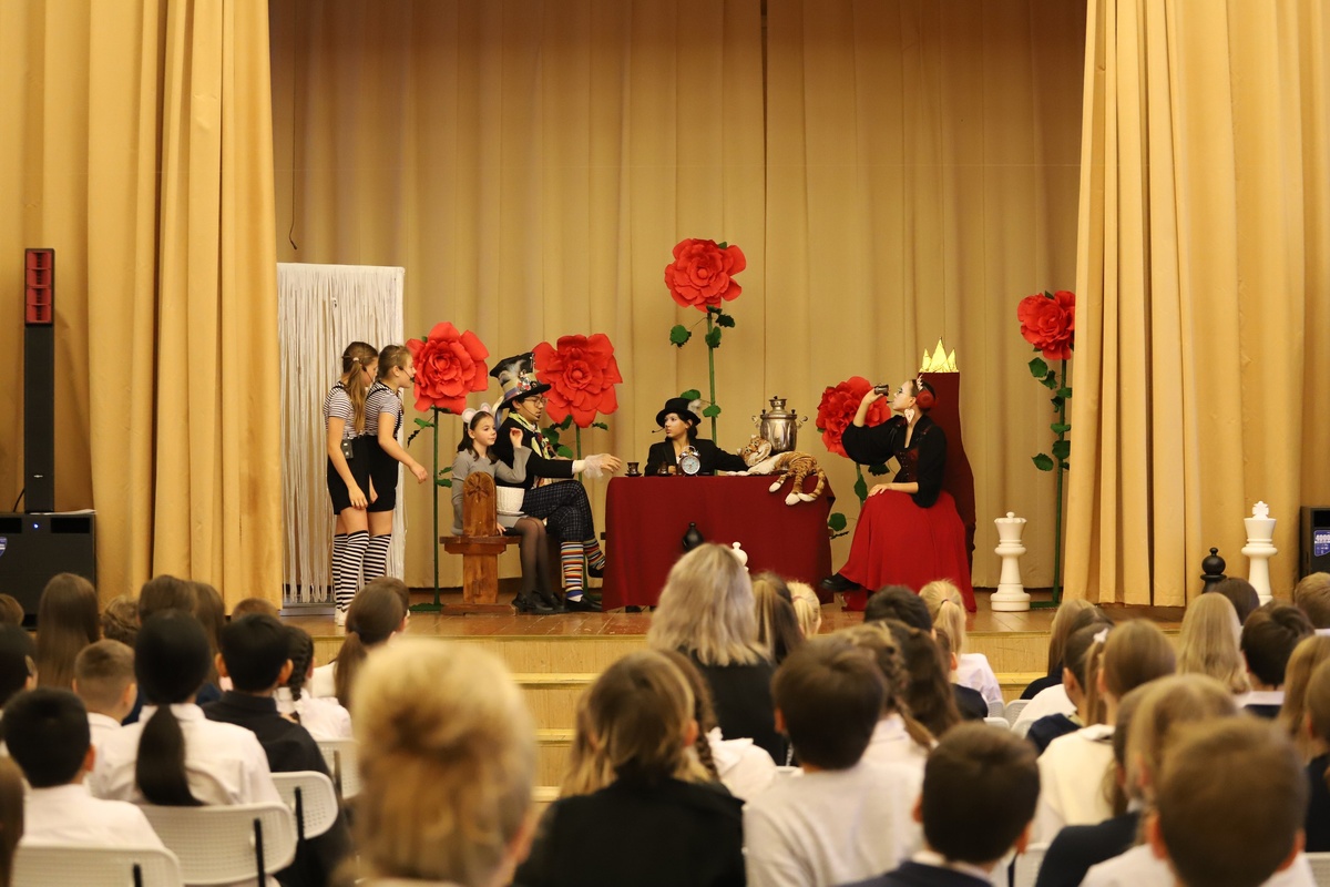 ✨ Добро пожаловать в Зазеркалье, юные пятиклассники! Сегодня мы хотим поделиться волшебными моментами нашего праздника «Посвящение в пятиклассники»! Этот день был поистине сказочным, ведь наши ребята вновь окунулись в удивительный мир «Алисы в Зазеркалье»! Как и на выпускном в четвертом классе, их ждало настоящее приключение: пропал подаренный Красной Королевой ключ Знаний, без которого стать настоящим пятиклассником просто невозможно! Но наши юные герои не растерялись! С невероятным энтузиазмом и безграничной фантазией они подготовили незабываемое представление. Ребята перевоплощались в любимых героев, и каждая сцена была наполнена юмором, артистизмом и неподдельной радостью. А образы Красной Королевы и Шляпника, которых чудесно воплотили ученики 9 класса Татьяна и Тимур, оставили неизгладимое впечатление! И вот, после всех приключений и испытаний, наши пятиклассники официально стали полноправными членами нашего дружного пятиклассного сообщества! Добро пожаловать в мир новых знан