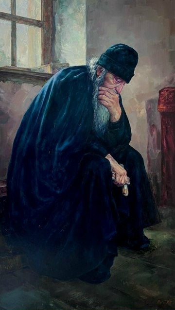 Особенно впечатлила картина, на которой запечатлён насельник Оптиной пустыни Илиодор. Оказалось, мы с Ириком были лично знакомы с иеродиаконом. Не оставила равнодушной и картина "Посланник солнца". Она как нельзя точно отображает нынешнее время, она - о силе духа, стойкости и НАДЕЖДЕ. Художник признается, идея ее создания родилась именно в Тарусе.