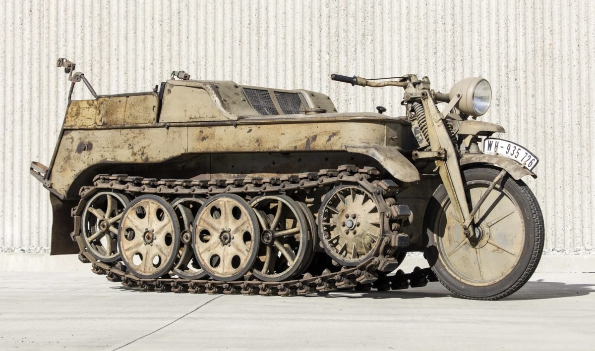 Этот необычный мотоцикл с универсальными свойствами на гусенично-колесном ходу одна из немногих моделей немецкой военной техники, которые хоть и выпускались в весьма ограниченном количестве, но смогли не только пережить войну, но и после нее выпускались заводом, так как оставалось немало комплектующих деталей.