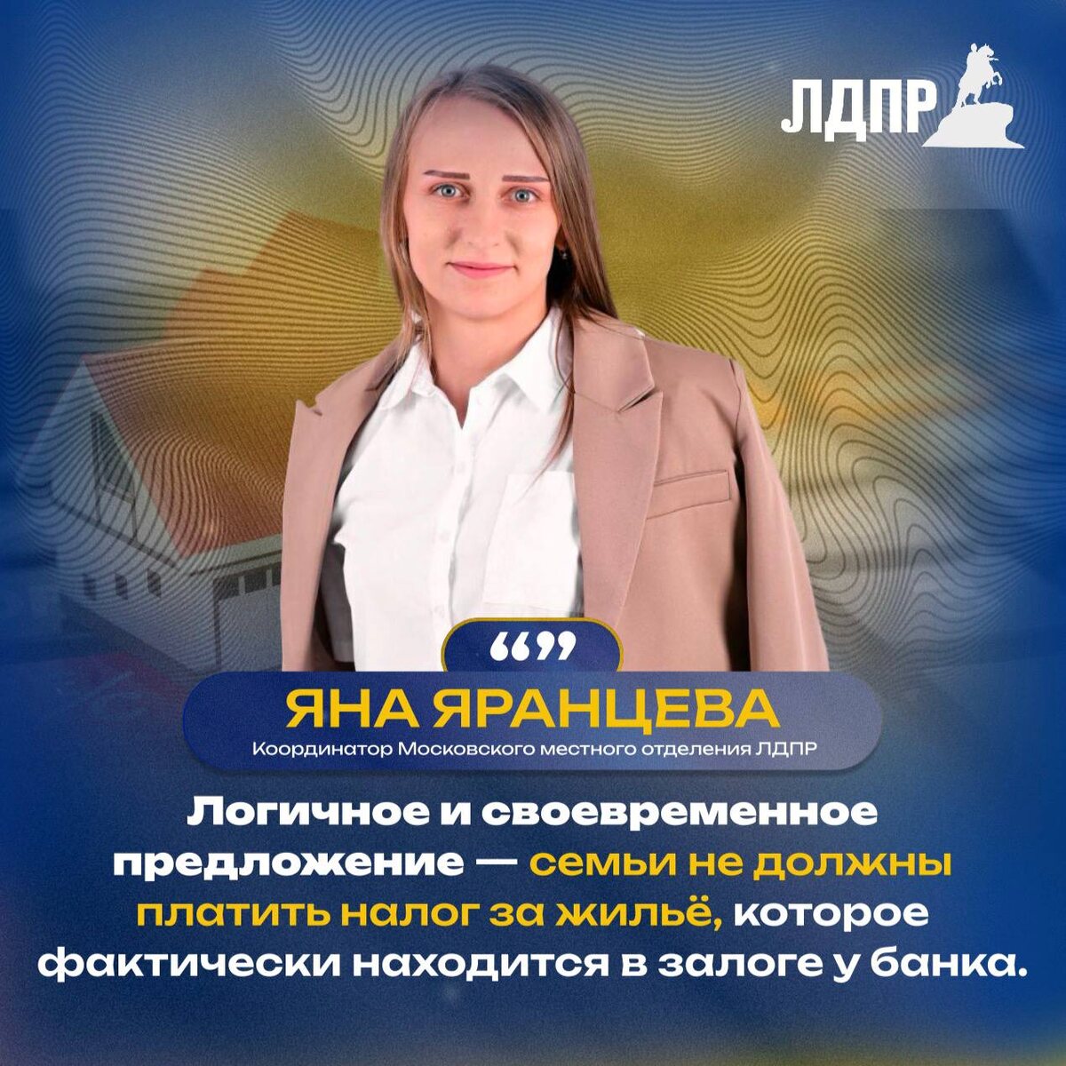 ЛДПР предлагает освободить от налога жильё в ипотеке Фракция ЛДПР во главе с Леонидом Слуцким внесла в Госдуму законопроект: не облагать налогом квартиры, дома и комнаты, купленные в ипотеку, если это единственное жильё и оно не используется в коммерческих целях. 💬 Леонид Слуцкий: «Семьи, выплачивающие ипотеку, уже несут огромную нагрузку. Даже при стоимости квартиры в 1 миллион рублей налог может составлять 30 тысяч в год. Мы предлагаем освободить такие объекты от налогообложения на весь срок кредита. Это позволит людям направить деньги на детей, образование и лечение». Сейчас налог на имущество - от 0,1% до 0,3% от кадастровой стоимости. Для семей с ипотекой и высокими ставками это ощутимый удар по бюджету. Инициатива ЛДПР поможет миллионам россиян, особенно молодым семьям и гражданам с низким доходом. 💬 Яна Яранцева, координатор Московского местного отделения ЛДПР: «Это шаг к социальной справедливости. Государство должно помогать людям становиться на ноги, а не обременять их н