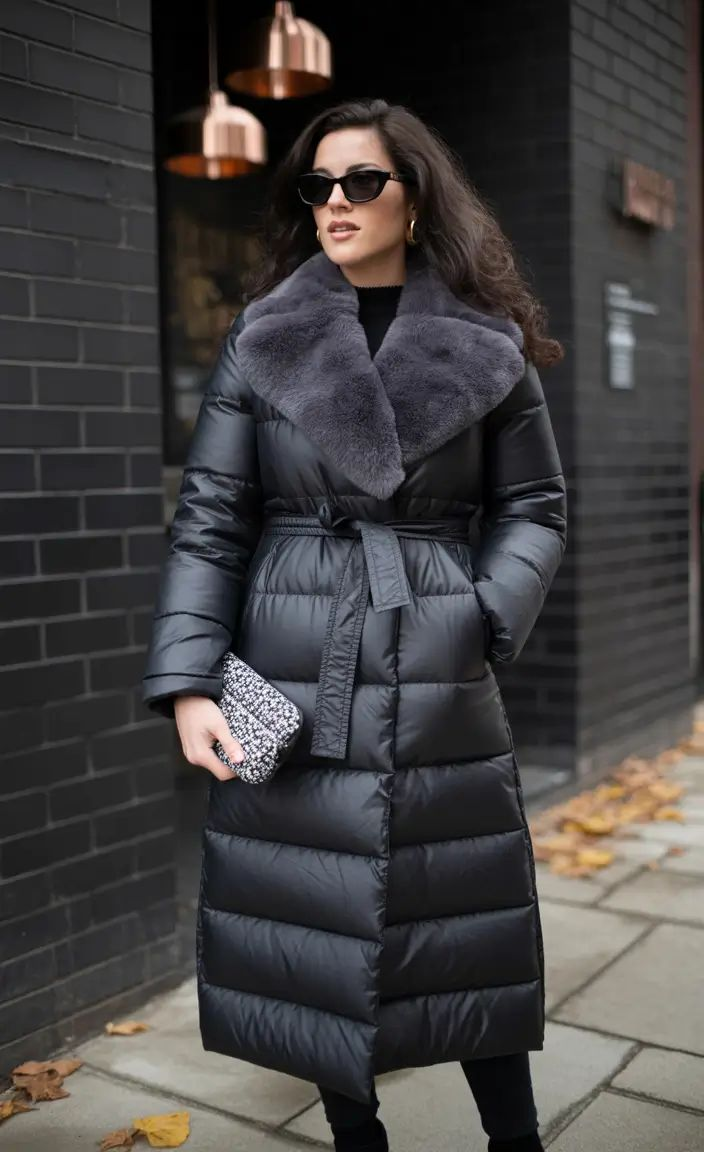 - Сочетайте пуховик с украшениями — минималистичные серьги или серьёзные очки придают образу статус.