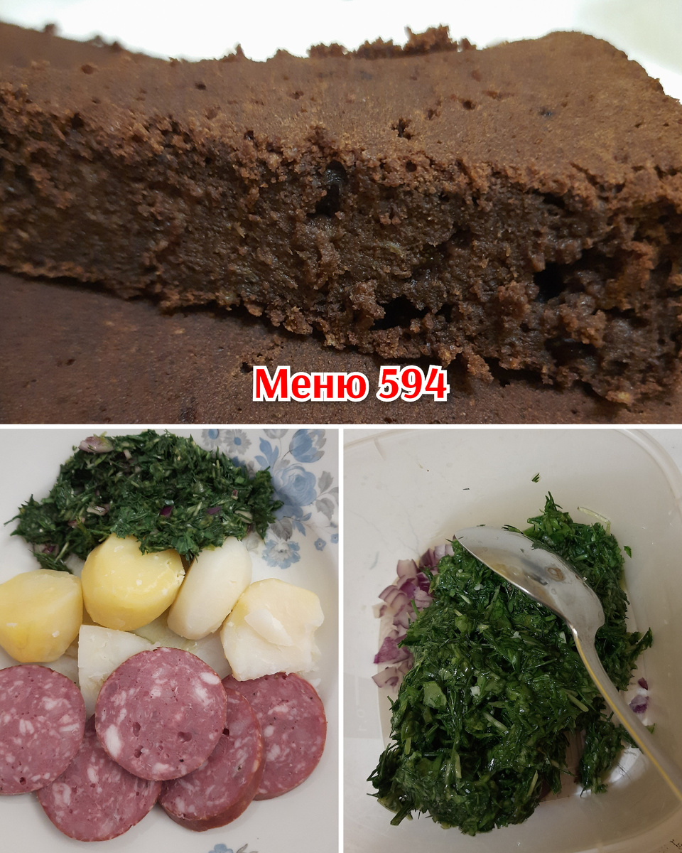 #Обед – отварной картофель, колбаса по типу Краковской, салат из зелени. Салат из зелени – это я так называю. А готовила в этот раз по рецепту, который называется - вариация аргентийского соуса чимичурри (chimichurri). В основе соуса – зелень, что-то кислое (лимон/лайм), чеснок/лук, оливковое масло, специи. В моей вариации – руккола, укроп, петрушка. Это все нужно положить в чашу измельчителя блендера. Добавить соль, молотый перец, масло. В идеале оливковое, но у меня его нет. Так что добавила высокоолеиновое подсолнечное. И немного сока лимона. Все измельчаю. Выкладываю в тарелку. И отдельно режу мелким-мелким кубиком красный лук. Смешиваю лук с соусом. Теоретически можно и лук добавить в блендер. Но в рецепте была задача сделать текстуру с кусочками. Текстура с кусочками лука мне, действительно, понравилась. А вот лимон тут лишний. Я делаю подобный салат – летом, чаще всего. Туда любую зелень с огорода, соль, масло. Там же измельчается зеленый лук. А оказалось, у этой субстанции даже