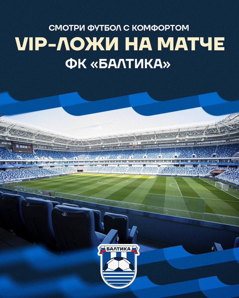 ФУТБОЛ С КОМФОРТОМ 💙 Смотри футбол в VIP-ложах на матчах ФК «Балтика» с комфортом и удобством! У тебя есть уникальная возможность. Покупай отдельный билет в VIP-ложу на матч против «Ахмата». И только на игре с гостями из Грозного вас ждёт кавказское меню. Напомним, что питание и напитки уже включены в ваш билет 😉 Купить отдельные билеты в VIP-ложу на предстоящий матч! Хочешь находиться в VIP-ложе только своей компанией, тогда бронируй ее полностью (вместимость - 10 человек). 📞 Выкуп полной ложи на матч по телефону: + 7 921 007-94-74