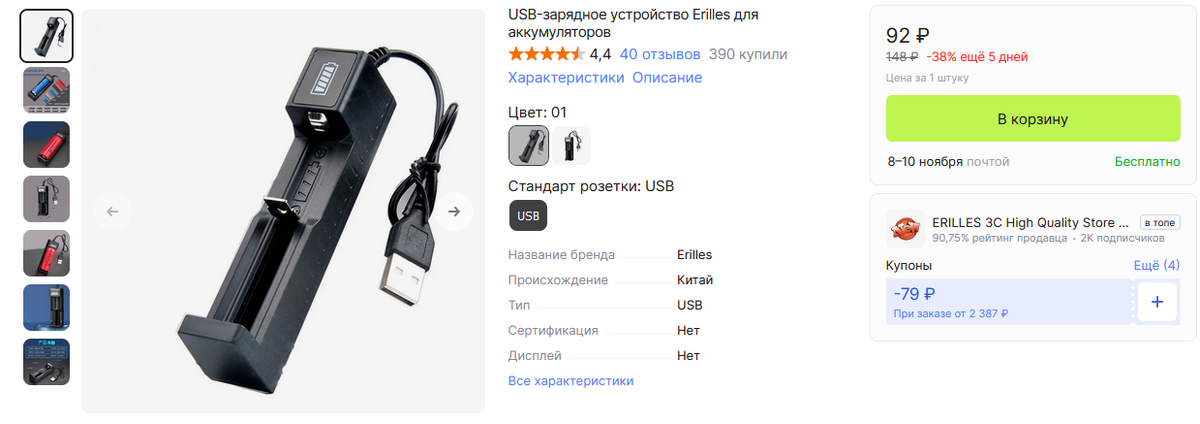 Добрый день дорогие друзья AliExpress уже давно стал не тем, чем был ранее, и особенно для российских покупателей. Резко сократился ассортимент товаров для радиолюбителей, а качество вообще не выдерживает никакой критики, сплошной брак, контрофакт и фальсификат. У меня в настоящее время накопилось большее количество деталей для еще не реализованных проектов и идей, поэтому я свел к минимуму приобретение чего либо нового , но тем не менее кое что я купил, и об этом я рассажу в этой статье, возможно моих читателей что ни будь из моих покупок и заинтересует Первая покупка зарядное Устройство Для Литиевых Аккумуляторов 18650, 26650, 14500, 16340 ABS Вот это он уже у меня на столе А это со вставленным аккумулятором 18650 В общем мне эта зарядка не очень понравилась , заряжает аккумулятор 18650 до напряжения 4,05В, буду смотреть ее и изучать, если ничего не смогу с ней сделать, то сниму с нее все потроха, а к ней приделаю вот такой модуль зарядки В модуле зарядки с помощь изменения номина