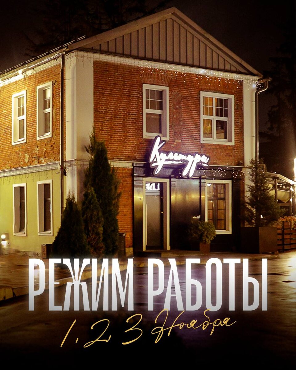 С 1 по 3 ноября мы работаем для вас в особом режиме. Сохраняйте этот пост, чтобы ничего не упустить! 🍽️ Ресторан: открыт с 12:00 до 03:00 🍸 Бар: работает с 18:00 до 4:00 Но и это не всё: ✨С 21:00 для вас играет диджей в ресторане и баре ✨Всех девушек в баре ждет welcome drink с 18:00 до 23:00 Телефон для бронирования столов: 790-900 Ваша Культура 🤍
