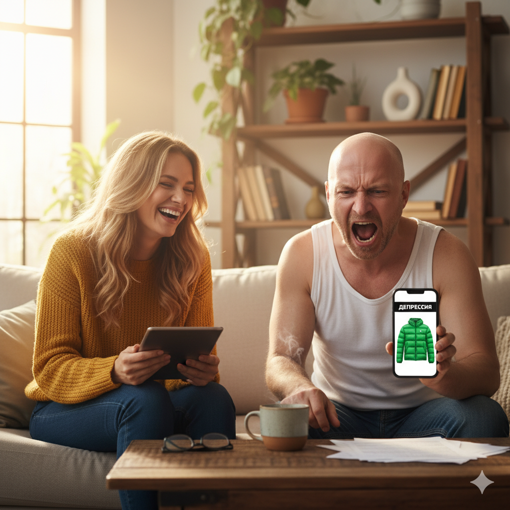 — КАРТА! — он размахивал пластиком перед её лицом. — Она не работает! Я при всех осрамился! Выбрал пальто, подошёл к кассе, а мне — отказ! Ты представляешь?! Мне отказали! Как последнему бомжу!