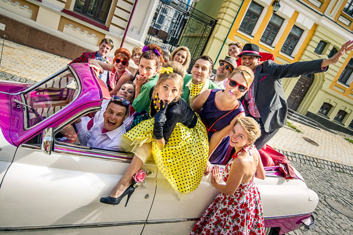 Такой стиль выбирают пары, мечтающие превратить день свадьбы в яркое и незабываемое событие. Подготовка требует внимания к деталям: ретро-автомобиль для молодожёнов, костюмы, выдержанные в духе 50-х, и стилизованное оформление.