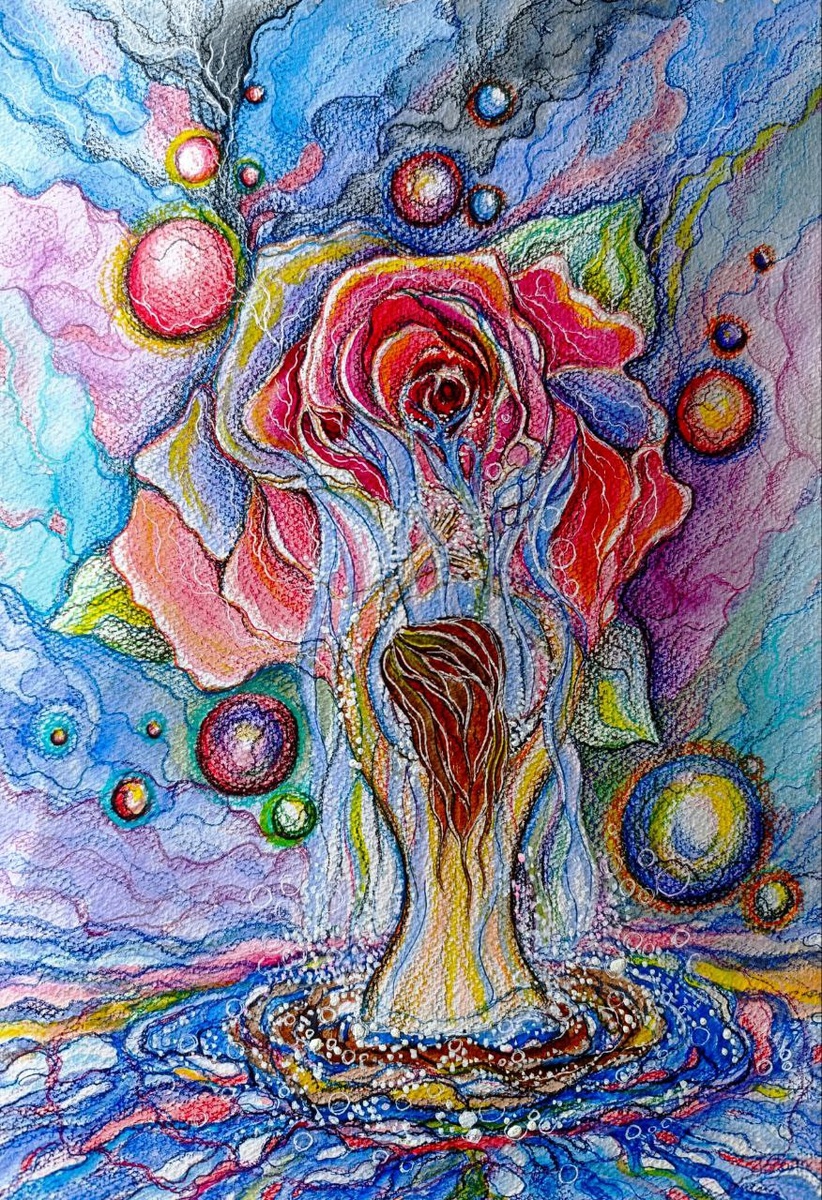 Рисунок на конкурс прислала Светлана Ножкина. Конкурс #Нейрохудожник35 (присылайте рисунки до 3 ноября в чат телеграм (https://t.me/neurografica) Иллюстрация на текст Надежды Андрияхиной: В паузах розы рождается нежность женщины "Наденька, как мне нравится ваш красивый верлибр! Он простой и сложный одновременно. Для меня его значение раскрывалось постепенно, когда я находила для себя спокойные минуты, чтобы побыть одной и оказывалась в этих самых паузах. Пауза для женщины это сакральный процесс, это остановка, это способность оставить всё свои дела, всё важное и послушать тишину. В тишине слышно своё дыхание, своё сердцебиение, свои мысли в которых мы думаем, как остановить очередного коня на скаку 😄, если удаётся отпустить на свободу весь незримый табун, то начинается, то самое сакральное волшебство. Женскую нежность всегда сравнивали с цветком. Она цветёт как роза, красива, она пахнет розой. Этот цветок - архетип сексуальной зрелости и и любви к себе. Он наполнен живительной силой