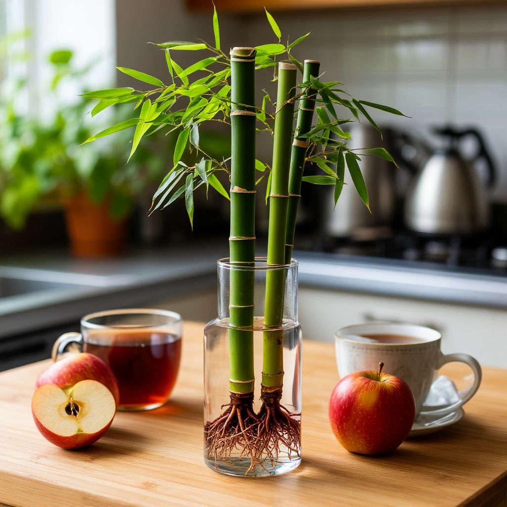 Утро началось с того, что я решила поделиться с вами забавной историей о появлении в моей жизни… баббука? Что за странное слово?! Ах да, это же была опечатка в сообщении от мужа! На самом деле речь, конечно же, о бамбуке. Итак, представьте: неделя назад мы с мужем отправились на штурм торговых рядов в поисках всяких интересностей. И вот в одном из киосков с растениями я увидела его — бамбук! Моё сердце забилось чаще: «Вот он, мой зелёный красавец!» Но супруг , окатил меня ушатом холодной воды: «Мы же не договаривались…» От разочарования я чуть не расплакалась, но всё-таки сдержалась. Правда, надулась так, что щёки чуть не лопнули! И что вы думаете?Сегодня ровно в 18.00, муж торжественно принёс домой бамбук!3 штуки растений,в пробирке или баночке! Оказывается, он всё таки решил, что без этого растения моя жизнь будет неполной. Ну что ж, бамбук у меня теперь есть. Я уже успела изучить про него немало интересного: оказывается, это не просто декоративное растение, а настоящий проводник п