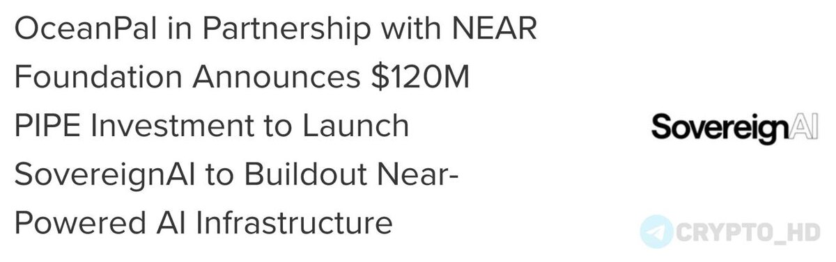 🤖 #NEAR Компания OceanPal инвестирует $120,000,000 в SovereignAI – AI-инфраструктуру на блокчейне NEAR (анонс) Crypto Headlines
