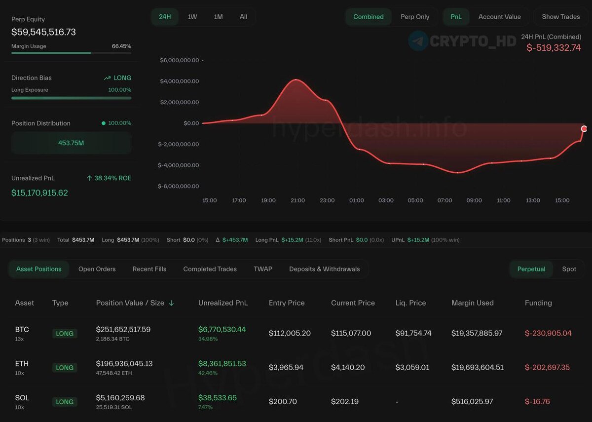 👀 Успешный трейдер «0xc2a3» решил залететь в лонг по Solana. Напомним, у кита пока не было ни одной убыточной сделки на Hyperliquid (100% win rate). Текущие сделки: ❖ LONG по #SOL с 10х плечом на $5,160,000+. Точка входа: $200. ❖ LONG по #BTC с 13х плечом на $251,650,000+. Точка входа: $112,005. Ликвидация: $91,754. ❖ LONG по #ETH с 10х плечом на $196,930,000+. Точка входа: $3965. Ликвидация: $3059. Crypto Headlines