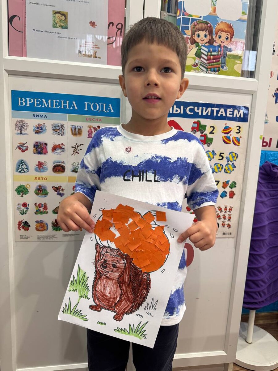 Обрывная аппликация с рисованием «Ёжик с запасами»🦔🎃