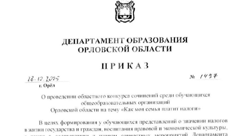 На Орловщине запустили фейковый приказ о проведении школьного конкурса сочинений Поддельный приказ регионального департамента образования анонсирует проведение областного конкурса сочинений «Как моя семья платит налоги» https://orlvestnik.ru/news/na-orlovshchine-zapustili-fejkovyj-prikaz-o-provedenii-shkolnogo-konkursa-sochinenij ✅ Подпишись на "ОВ" 📩 Прислать новость #Орловский_вестник #Орловская_область