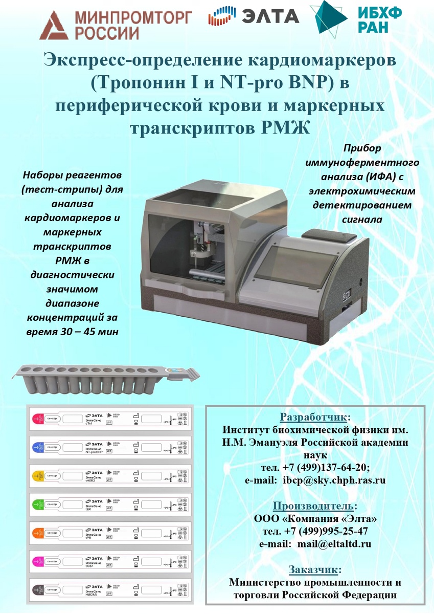 На ярмарке будет представлено Экспресс-определение кардиомаркеров (Тропонин I и NT-pro BNP) в периферической крови и маркерных транскриптов РМЖ: