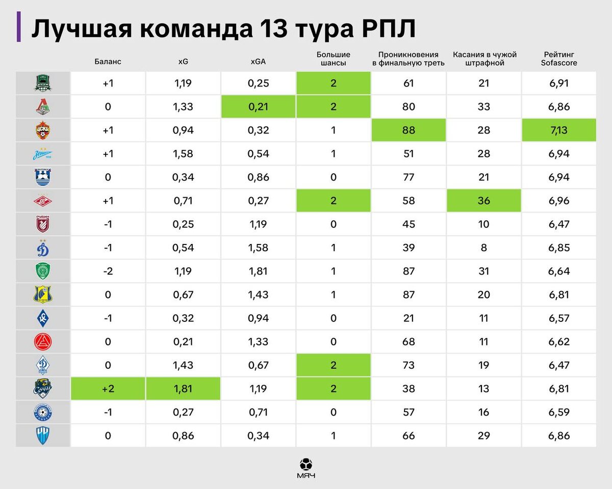 Рубин - худшая команда 13 тура РПЛ по индексу Мяч RU, набрав 51 балл.