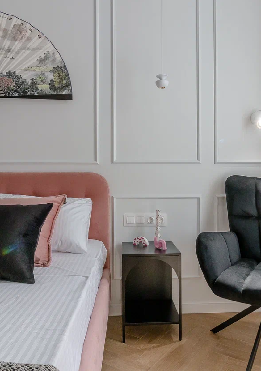 Иногда для создания идеального интерьера в историческом здании требуется не просто ремонт, а настоящая трансформация. Так случилось с этой квартирой в кирпичном доме 1912 года на Петроградской стороне, где дизайнер Елена Голубева превратила бывшую коммуналку в современное жилое пространство с характером. Главной сложностью стали полностью сгнившие перекрытия, которые пришлось заменять — но именно это позволило создать совершенно новую планировку. Заказчики мечтали о пространстве, где царила бы атмосфера праздника, и дизайнер блестяще справилась с этой задачей, используя смелые цветовые акценты и сочетая современные решения с классической основой. Яркие акцентные стулья в гостиной, пастельно-розовое изголовье кровати в спальне и графичный черно-белый санузел с золотой сантехникой — каждый элемент подчеркивает индивидуальность этого дома. Особое настроение создает уникальное декоративное панно в прихожей, выполненное петербургской художницей на заказ. Этот проект доказывает, что даже в с