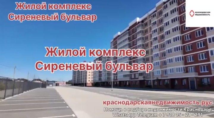 Жилой комплекс Сиреневый бульвар восьми - девяти этажные четыре монолитно кирпичных дома расположенных в Карасунском внутригородском округе города Краснодара посёлке Пригородном . С парковкой на 880 мест рядом с домом. С благоустроенной территорией между домами с размешеными детскими площадками, спортивными площадками. Благоустроенными площадками для отдыха. Закрытой территорией от автомобилей во дворе. Из окон домов жилого комплекса можно увидеть горы Северного Кавказа. В шаговой доступности расположенна муниципальная средне юобразовательная школа. Напротив школы расположен муниципальный детский сад. Рядом с детским садиком расположенная городская поликлиника. На против жилого комплекса расположенны магазины. В двух шагах с жилым комплексом расположенна автобусная остановка. Видео о жилом комплексе Сиреневый бульвар краснодарскаянедвижимость.рус помощь в подборе недвижимости в Краснодаре WhatsApp Telegram Max + 7 918 15 - 21 - 291 #КраснодарскаяНедвижимость #Краснодар #Недв