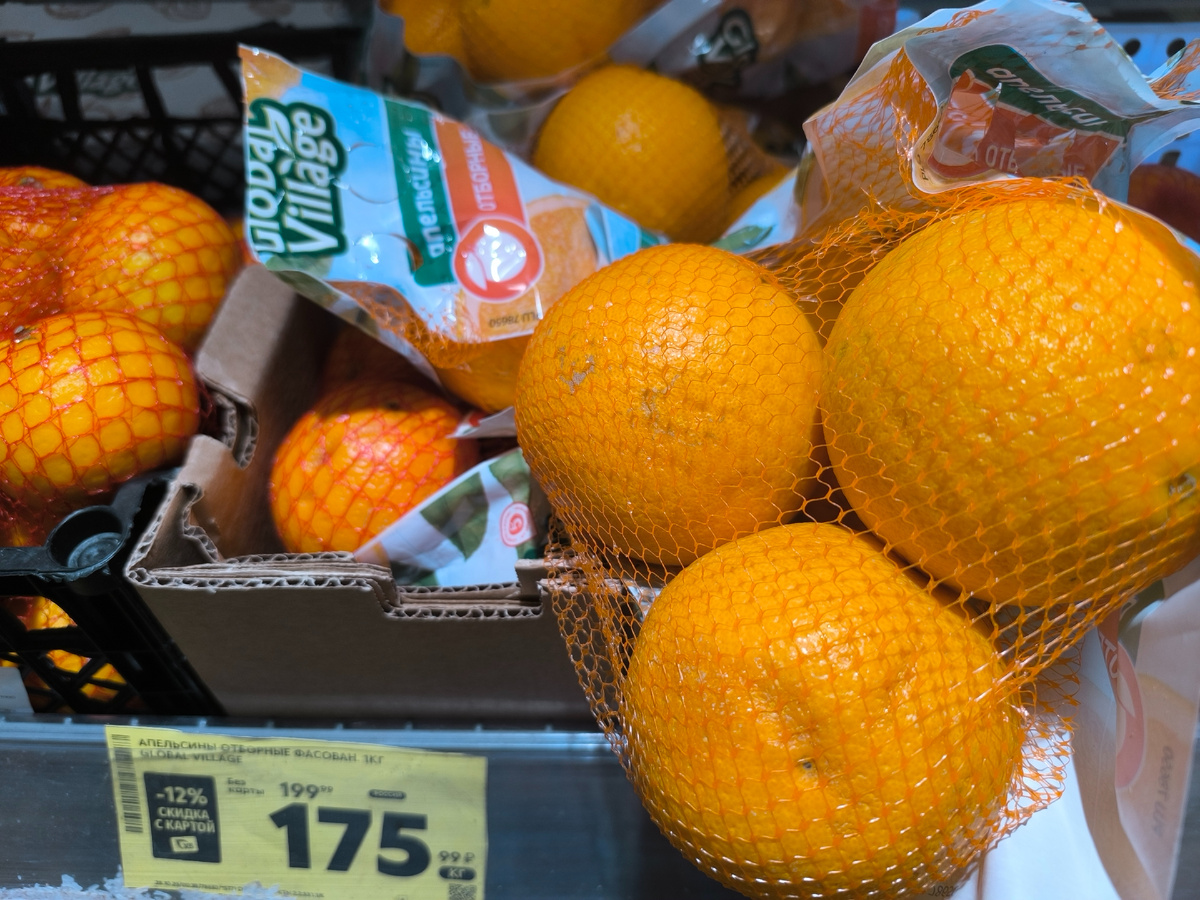 Давненько не выкладывала вам актуальные цены в московской "Пятерочке". Сфотографировала цены на некоторые продукты, которые иногда покупаем. Завтра приезжает папа в поликлинику и зайдёт на обед. Соберу ему с собой покушать. Буду готовить щи, винегрет и тефтельки с картофельным пюре. На подходе к магазину по количеству входящих и выходящих покупателей видно, что торговля кипит. В октябре ещё можно купить недорогие овощи и фрукты российского производства. Ну так я думала, когда заходила в супермаркет. Очень мне нравится новый дизайн "Пятёрочек" (который на само деле уже далеко не новый). Мне очень нравится супермаркет "Пятёрочка" возле нашего дома. Он относительно большой, и в нём всегда чисто, светло и хорошо пахнет выпечкой, а ещё в нём есть аптека. Прилавки и витрины заполнены фруктами и овощами. Правда фрукты уже почти все привозные, за исключением сезонных яблок, а овощи в основном местного производства на разные кошельки, особенно это заметно по ценам на помидоры. Апельсины 175 ру