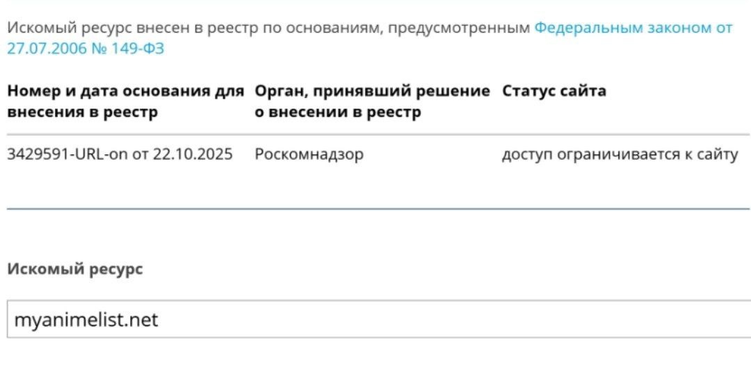⚡Роскомнадзор заблокировал в России крупнейшую в мире базу аниме и манги MyAnimeList