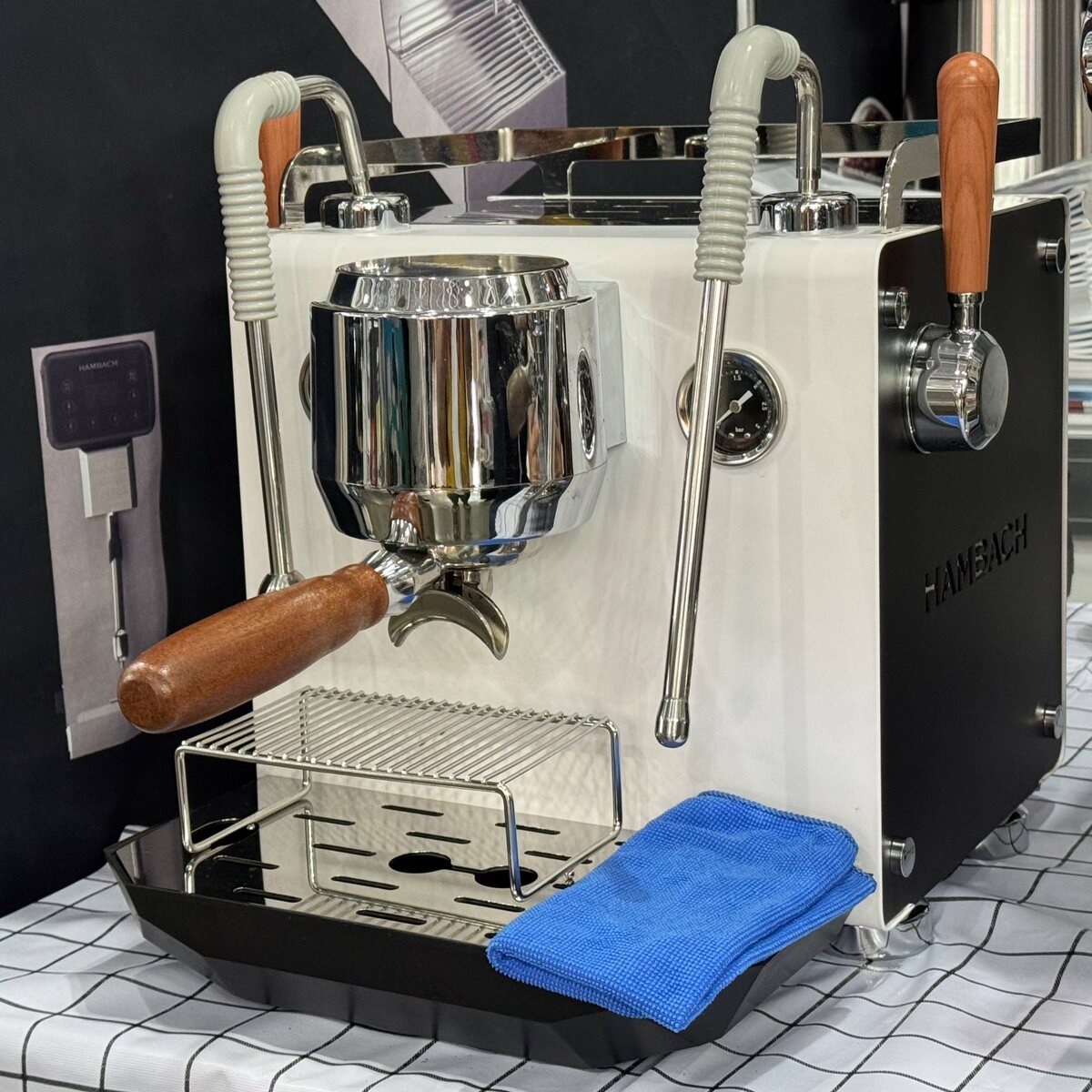 ✴️ Кофемашины Hambach Нашел домашнюю кофемашину китайского производителя Hambach. Спросил, что у неё внутри: бойлеры или термоблоки? Для ответа на этот вопрос для меня вскрыли кофемашину. Там оказались честные бойлеры. Где-то внизу видна зеленая вибропомпа. Группа 58мм, над группой какой-то дисплейчик. Не знаю насколько он умный. Короче, выглядит как недорогой двухбойлерник начального уровня. Я пообщался с ними и мне скинули презенташку. Компания называется Microcosm, делает продукцию под брендами Microcosm, Futurbar, Dhron и Hambach. В зависимости от цены такие кофемашины могут быть конкурентами HiBrew, Gemilai и Китфорт. Пдфку выложу в комментарии. #ПИР от @Кофезавра