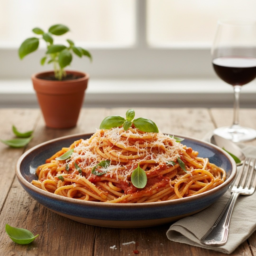 Спагетти с томатным соусом Ингредиенты ⤵️ 🔸 Спагетти – 250 г 🔸 Помидоры спелые – 600 г 🔸 Чеснок – 3 зубчика 🔸 Лук репчатый – 1 шт. 🔸 Базилик свежий – ½ пучка 🔸 Сахар – 1 ч.л. 🔸 Соль, перец - 1 щепотка 🔸 Оливковое масло – 3 ст.л. 🔸 Сыр пармезан – 50 г Приготовление🍝 1. Спагетти отварить в подсоленной воде согласно инструкции на упаковке. 2. Помидоры надрезать крест-накрест, обдать кипятком и снять кожицу. Мякоть измельчить. 3. Лук и чеснок мелко нарезать, обжарить на оливковом масле до прозрачности. 4. Добавить томатную мякоть, тушить 15 минут на среднем огне. 5. Приправить солью, перцем и сахаром. Добавить измельченный базилик. 6. Спагетти смешать с готовым соусом. 7. Подавать с тертым пармезаном и листиками базилика. Рецепт дня #спагетти #томатный_соус #помидор #специи #сыр #макарон #паста #ужин