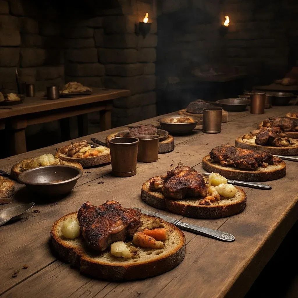 Хлебные блюда из прошлого: когда черствый хлеб был тарелкой Приветствую вас, друзья, в рубрике: «Интересный факт». 😉 Если вы думаете, что современные тенденции в кулинарии удивительны, то приготовьтесь узнать кое-что действительно необычное! В Средневековой Европе, а именно с XII по XVI века, люди часто ели пищу прямо с кусочков хлеба вместо привычных нам сегодня фарфоровых или керамических тарелок! Эти куски хлеба назывались «тренчер» (от французского слова «trencher», означающего «ломоть»). Обычно это были толстые ломти чёрствого хлеба, нарезанные так, чтобы они могли служить удобными поверхностями для подачи пищи. Бедняки, естественно, съедали этот кусок после еды, а богатые нередко отдавали тренчи слугам или бедным людям. Так что если у вас остался немного зачерствевший хлеб – не спешите выбрасывать его! Попробуйте приготовить вкусное блюдо, вспомнив о старых традициях. Например, можно использовать кусочки хлеба как основу для приготовления брускетты или гренок п