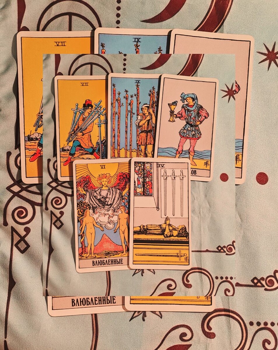 Отличный расклад! Давайте разберем карты, чтобы понять, какие энергии и ситуации могут ожидать Льва в ноябре. Важно помнить, что карты Таро — это не предсказание судьбы, а совет и указание на возможные тенденции. Общая тема месяца: Выбор и восстановление сил Месяц пройдет под влиянием двух старших арканов — Влюбленных и Шута (который является тенью Влюбленных). Это указывает на важный, судьбоносный выбор, который придется сделать, возможно, связанный с отношениями, ценностями или жизненным путем. Ноябрь потребует ясности ума, честности с собой и другими, а также периода отдыха для принятия верного решения. Ключевые аспекты ноября: 1. Исходная ситуация: Сомнения и скрытые действия (7 Мечей) Месяц начинается с энергии обмана,уклонения или неполной правды. Возможно, Лев чувствует, что не может решить проблему в лоб, и ищет обходные пути. Или же кто-то в его окружении действует не совсем честно. Эта карта предупреждает: не надейтесь "проскользнуть" мимо проблемы. Стратегия, основанная