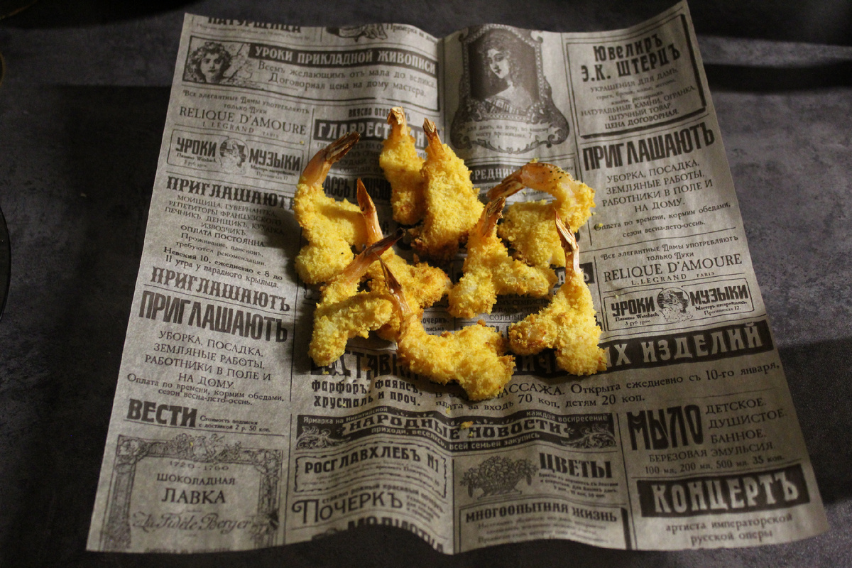📋 Креветки - 250 гр. Яйцо - 1шт. Мука - 50 гр. Панировочные сухари панко - 100 гр. Соль - 0, 5 ч. л. Молотый перец - 0, 5 ч. л. Итальянские травы - 0,5 ч. л. Разделайте каждую креветку , аккуратно разрезав их вдоль по центру . В отдельной ёмкости взбить яйцо со специями и небольшим количеством воды. Обваляйте креветки со всех сторон в муке , встряхивая, чтобы удалить излишки муки. Возьмите креветку за хвост, и окуните ее во взбитое яйцо, дав излишкам стечь обратно в миску. Третий и заключительный шаг панировки - это обвалять в сухарях панко слегка прижимая их, чтобы креветки были со всех сторон покрыты сухарями , как на фото. Можно пожарить креветки во фритюре, но я предпочитаю запечь их в аэрогриле. Запекаю при температуре 200 градусов 8-10 минут. Предварительно сбрызнув из маслом из спрея. Приятного аппетита!