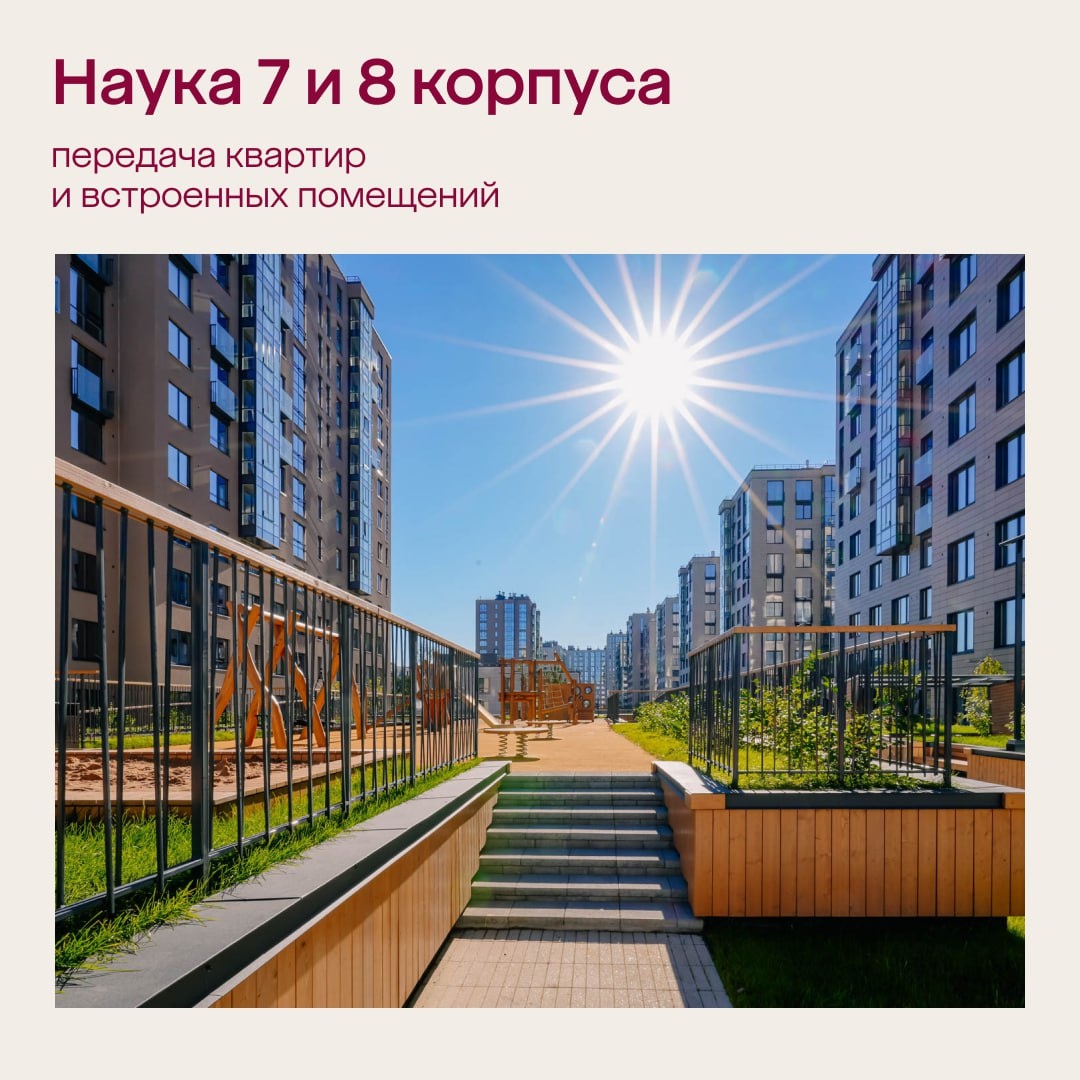 Передача квартир и встроенных помещений в 7-ом и 8-ом корпусах ЖК «Наука» Уважаемые покупатели, начиная с 10 ноября 2025 г., мы рады пригласить вас на осмотр квартир и встроенных помещений седьмого и восьмого корпусов ЖК «Наука». Осмотр и оформление документов будет проходить в Центре заселения по адресу: улица Академика Константинова, дом 1, корпус 1, квартира 53 (2 парадная, 2 этаж) по предварительной записи в будние дни. Мы подготовили для вас памятку, в которой собрали необходимую информацию: список документов, которые понадобятся при оформлении, и номер телефона для записи на осмотр. Поздравляем с новосельем!