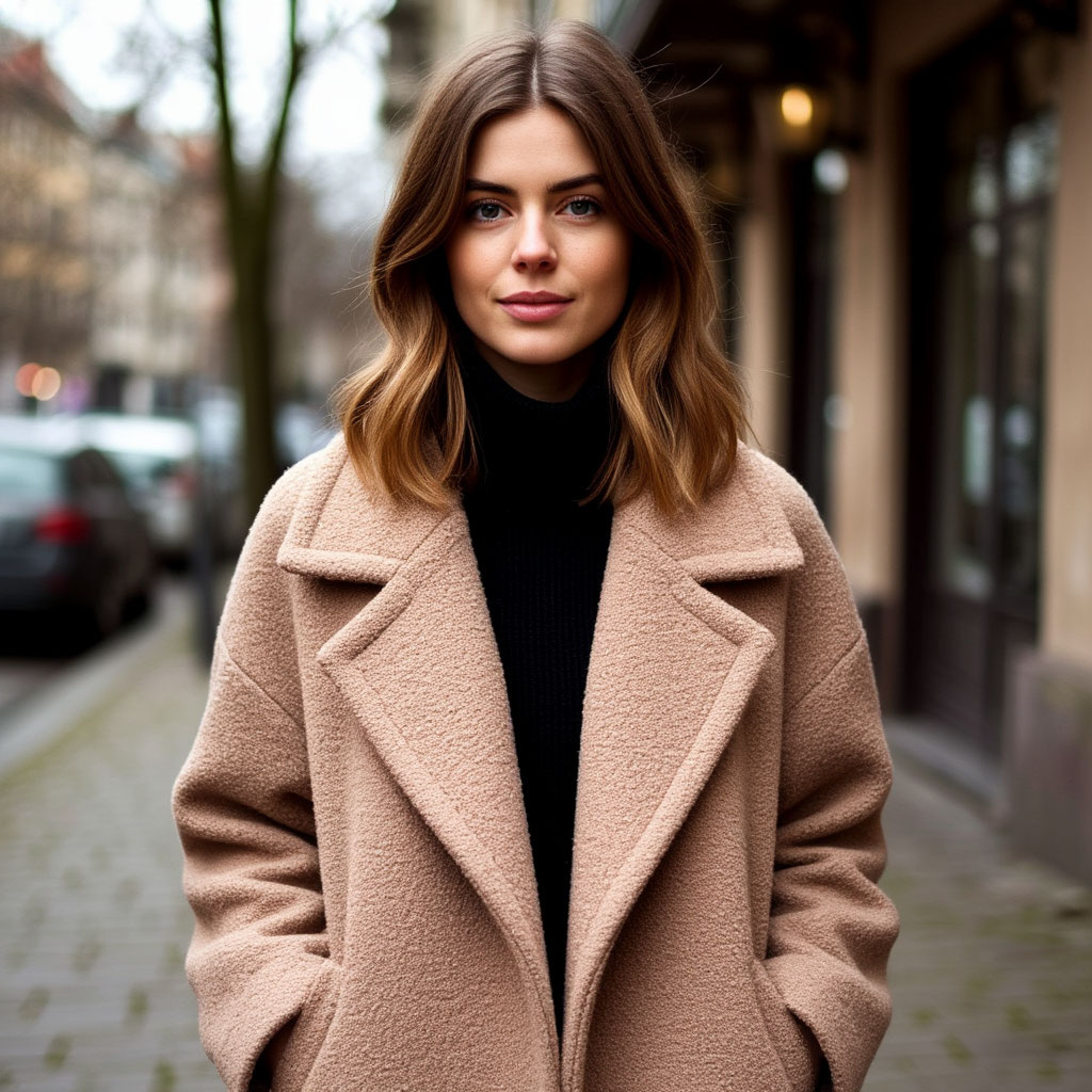 - Почему это изящно? Силуэт пальто-кокона визуально мягкий и женственный. Оно не требует ремня, чтобы подчеркнуть талию, оно создает элегантный образ за счет своей формы.