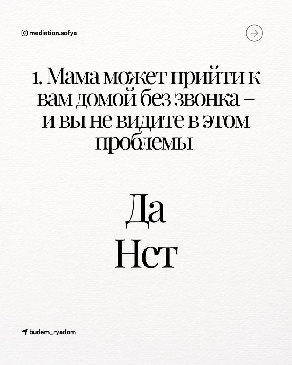 У сепарации с мамой есть 3⃣ уровня: 〰Уровень «Мастер» Вы полностью сепарировались и на 100% являетесь самостоятельной личностью. Ваши решения – только ваши. 〰Уровень «Любитель» Вы уже начали расставлять границы, но иногда мама все же переходит черту. Территорию еще предстоит отвоевать окончательно. 〰Уровень «Новичок» Вы даже не задумывались о сепарации. Зачем, если все уже постирано, приготовлено и убрано? А на каком уровне находитесь вы? Пройдите мини-тест и узнайте! Отвечайте быстро, первым пришедшим в голову ответом. #ЖилинаСофья #родителидети