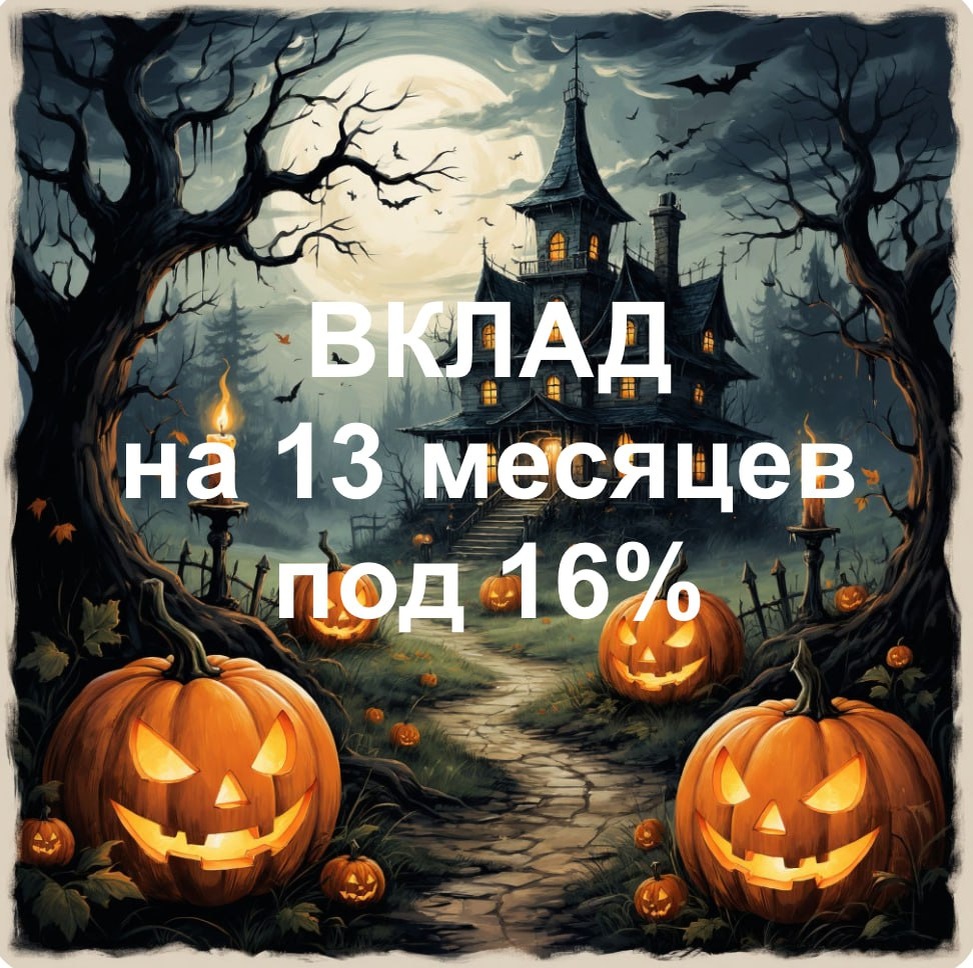 Тинёк предлагает особый вклад 🎃 Ставка 16% на срок вклада 13 месяцев. Чтобы зафиксировать условия, нужно открыть и пополнить вклад 31 ОКТЯБРЯ. Предложение действует ТОЛЬКО ОДИН ДЕНЬ 🤓 Максимальная сумма такого вклада - 1 млн, можно будет довносить средства в течение следующих 30 дней с момента первого пополнения в рамках лимита.