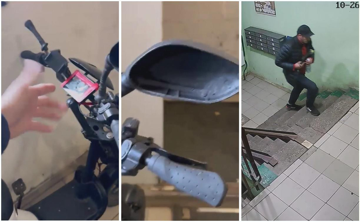 Вандал разбил самокат доставщика в подъезде на Вильямса