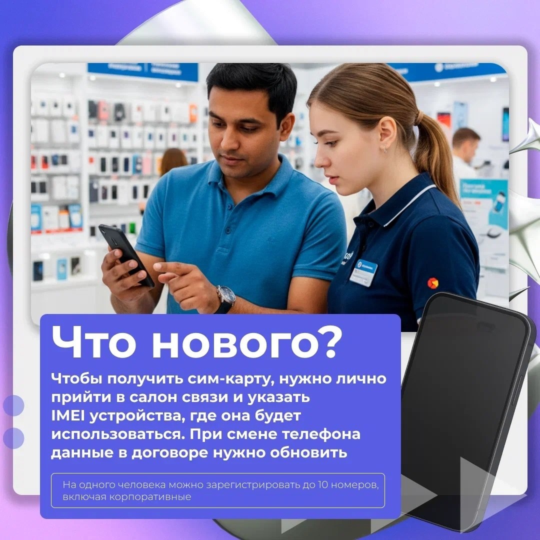 В силу вступили поправки в закон «О связи»: теперь сим-карты для иностранцев оформляются по новым правилам. Что именно изменилось — рассказываем в карточках.